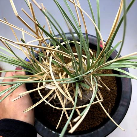 商品情報 [サイズ]葉幅:約35cm 塊根幅:約7.5cm 樹高:約22cm 鉢径:約18cm [商品情報]葉と塊根、どちらも見ごたえのある、人気のカリバナスフーケリー。 バキバキと割れ始めているコーデックス部分は大迫力!! 耐寒性・耐乾燥性があり、樹勢強健で、お育ていただきやすく、しっかり根の張った固体は、露地栽培可能です。 お庭の主役・シンボルツリーにお育ていただくもよし、インテリアにしていただくもよし! 科名:リュウゼツラン科 属名:カリバナス属 原産地:メキシコ 撮影:2019年2月21日 *写真の現品をお届けします。 [育て方について]・置き場所 年間を通して日光のあたる明るい場所で管理します。基本的には日光を好み、日照が不足すると弱い株になってしまいますので、たくさん日に当ててあげましょう。また、寒さは強いですが、氷点下の日が続くようでしたら冬場は室内に保護する方が無難です。 ・水やり 水かけは、土が乾いたらたっぷり与えます。夏は6日に1度。春・秋には10日に1度が目安です。冬場は春まで乾かしめに管理し、月に1〜2度、温かい日に水かけします。 ・肥料 あまり必要ありませ |