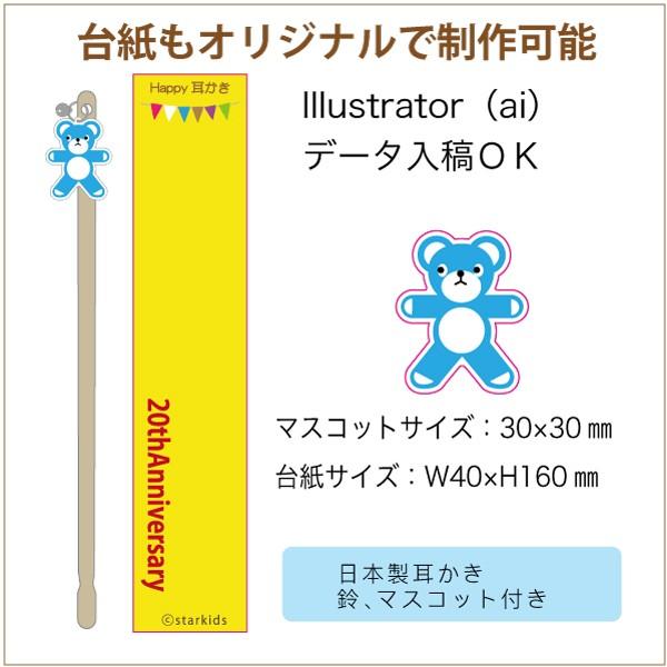 商品情報 オリジナル製作マスコット付き耳かきを100個単位で制作します。1個あたり360円(税抜き)です。 ショップオリジナル、イベントなどに需要のある耳かき商品を製作します。 周年記念イベント、フリマ出展用のオリジナルグッズなど。 オリジナルデータの入稿受け付けます。 ロゴやキャラクターのデータはご注文後に送付をお願いします。 100個の価格です。ご注文は100個の場合は1と入れて下さい。500個以上の場合はお見積致します。 台紙もオリジナルで作ります。(PP袋入り) デザインイメージについて 事前にイメージ画像を確認して頂きます。お客様よりレイアウトの了承を頂いてから制作開始となります。 納期は20日〜30日となります。事前にご相談ください。 ご要望があれば買い物カゴを進むと「ストアへのご要望」がありますのでそちらにご記入ください。 |