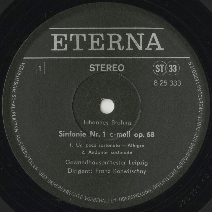 商品情報ブラームス:交響曲1番Op.68/F.コンヴィチュニー指揮ゲヴァントハウスo./東独ETERNA:825 333 |
